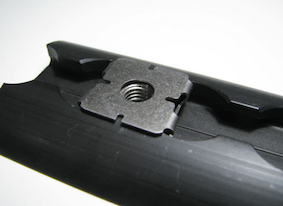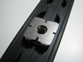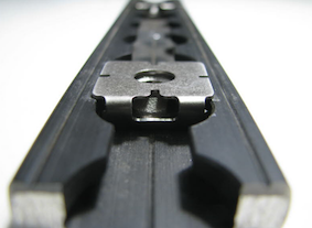 - Clip fixiert die Mutter sicher unter den Stegen, beide Teile sind sicher gegen Herausfallen oder Verschiebung gesichert.