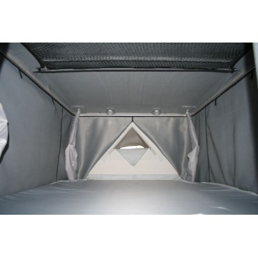 Die Montage im Zeltinneren bietet mehrere Vorteile. Für das Anbringen wird keine Leiter benötigt, die Thermoisolierung verschmutzt nicht und erschwert zudem nicht das Schließen des Zeltes weil nichts in die Dachschalen hinein gestopft werden muss.