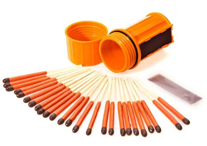 Wind- und wasserfeste Streichhölzer in praktischer Dose.