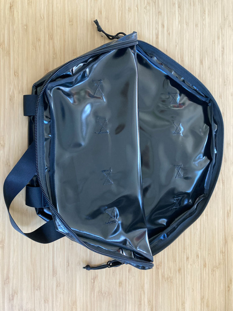 Die Tasche verfügt über Traggriffe und doppelseitigen YKK Reissverschluss