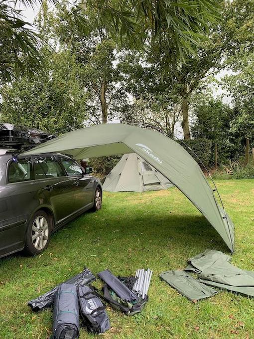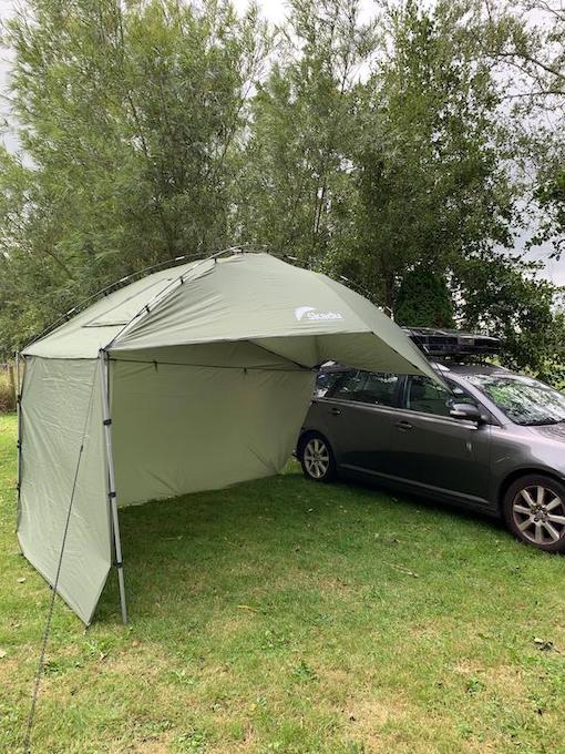 SKADU TOO wird mit 3 Seitenwänden geliefert, zwei an der langen Seite der Markise und eine an der kurzen Seite am Ende. Ganz gleich, wie Sie diese Markise aufstellen, hinter oder neben dem Fahrzeug, Sie werden immer Schatten oder Schutz vor Regen haben. Beachten Sie, es ist eine Markise, kein Zelt.