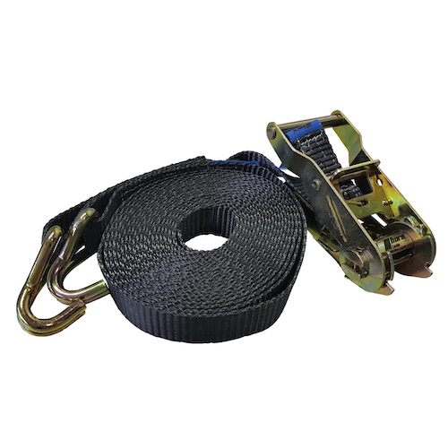 Der Spanngurt mit Ratsche und J-Haken dient zur Fixierung der Ladung für einen sicheren Transport.