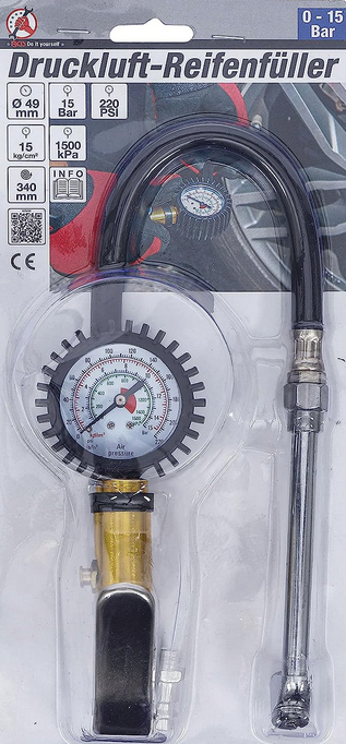 • Druckmanometer-Skala 0-15 bar / 0-1500 kPa / 0-15 kg/cm² / 0-220 PSI