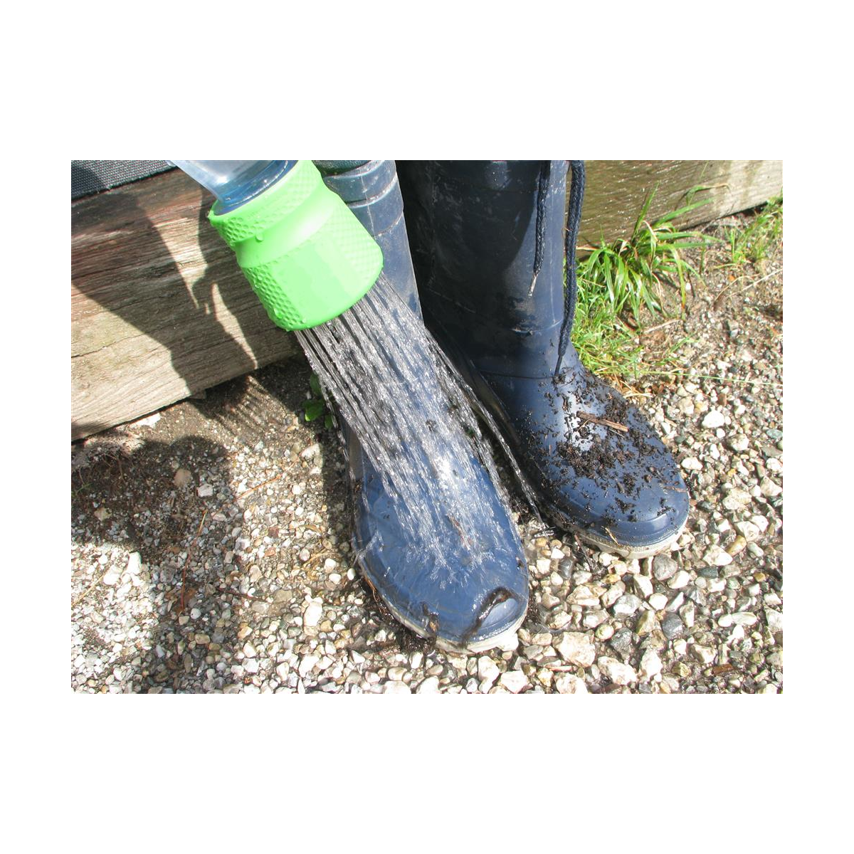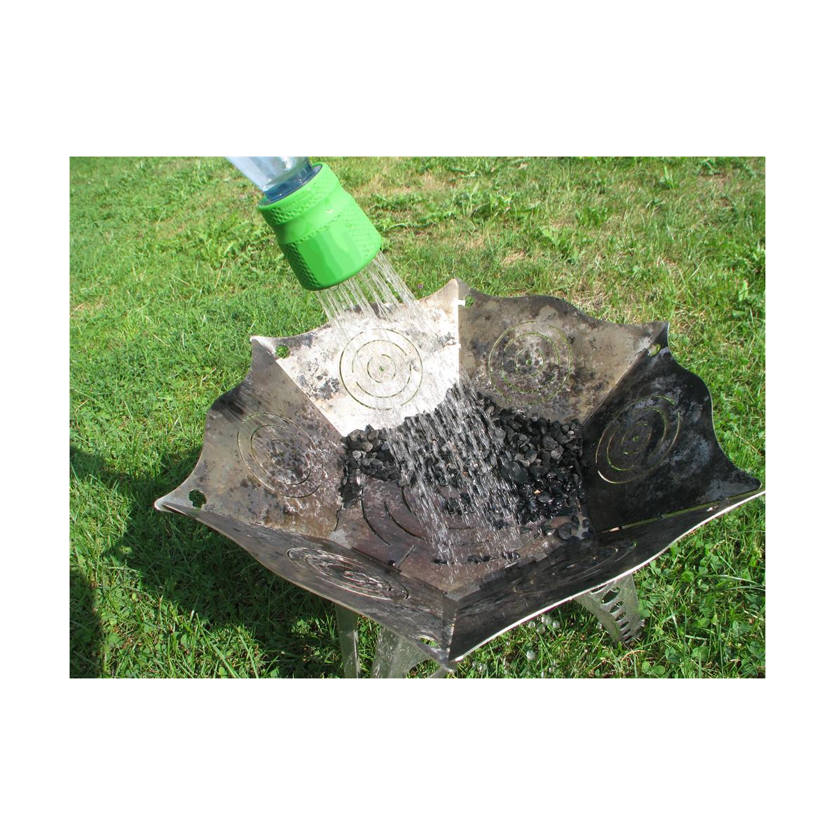 Tip: mit einer z.B. an einem Ast aufgehängten Flasche stoppt der Wasserfluss, wenn man die Flasche nicht schüttelt. Dann z.B. einseifen oder Wasser sparen. Umgekehrt kann man durch leichtes Rütteln den Duschvorgang starten.
