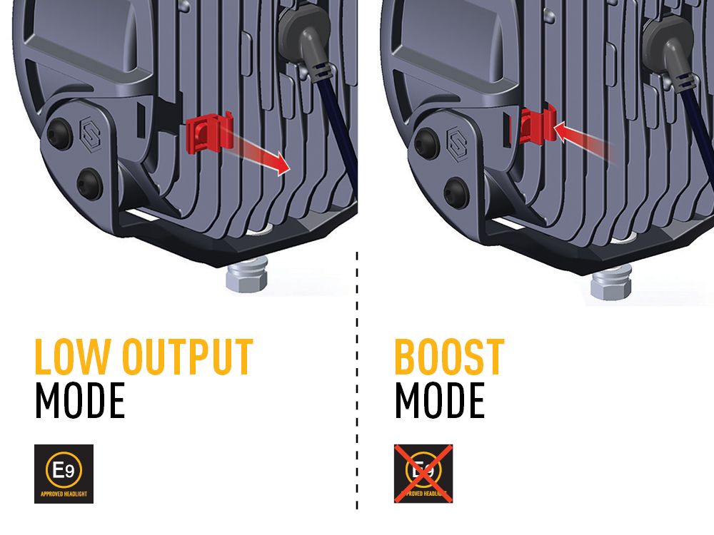 Als Symbol für die gezeigte Lichtleistung übertreffen die Lampen bei 100 % Betrieb die UNECE-Fernlicht-Fahrlichtvorschriften, sodass sowohl die Standard- als auch die Elite-Leuchten die E-Boost-Technologie mit zwei Ausgängen von Lazer verwenden. Wodurch das Entfernen der mitgelieferten Boost-Kappe von der Rückseite der Lampe (die Lichtleistung muss innerhalb des Grenzwerts der Verordnung 148 liegen), die Verwendung der Lichter neben den Standard-Fernlicht-Fahrlichtern an Ihrem Fahrzeug ermöglicht.
